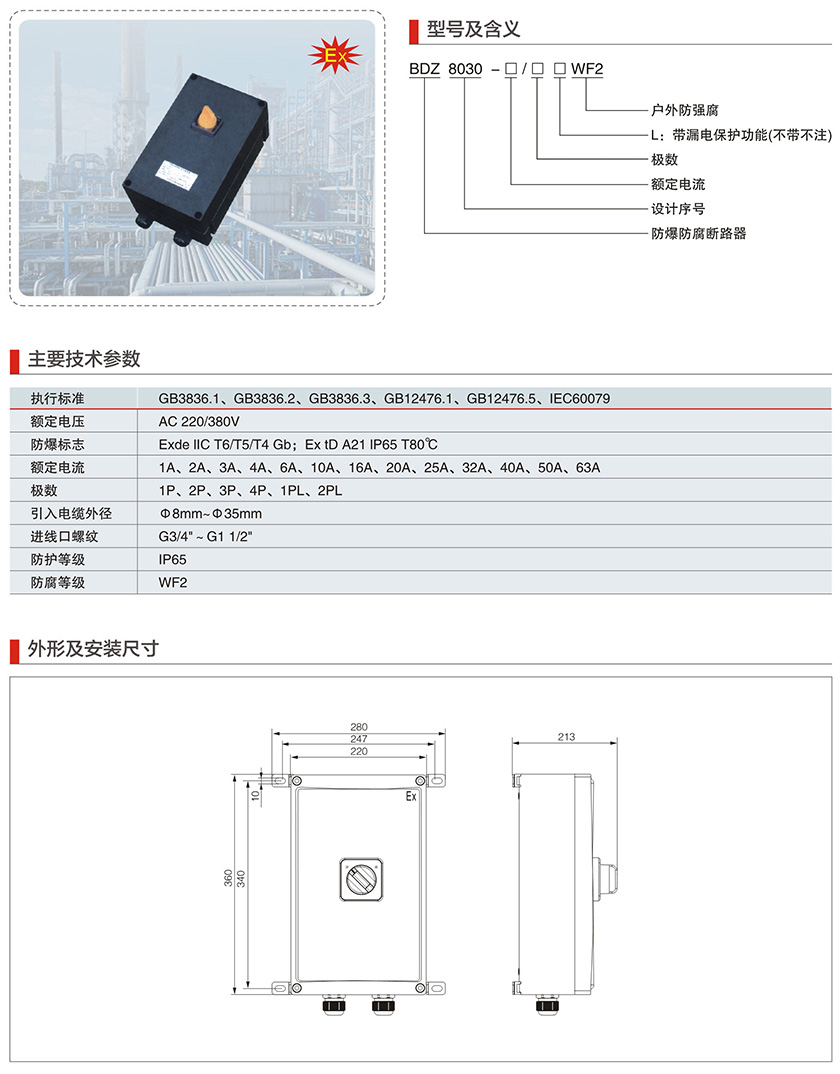 BDZ8030系列防爆防腐断路器(IIC、Ex Td)